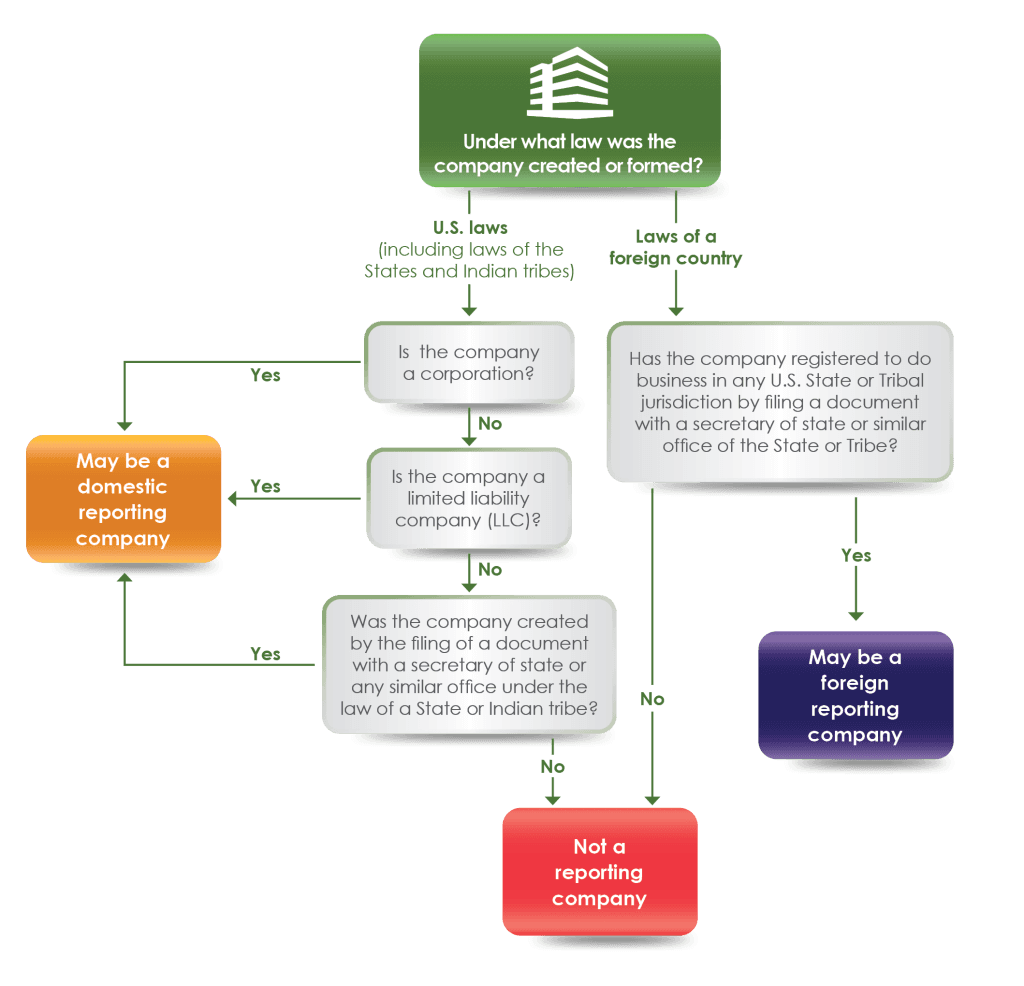 FinCEN’s Small Entity Compliance Guide for beneficial ownership information reporting includes the following flowchart to help identify if a company is a reporting company: